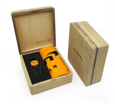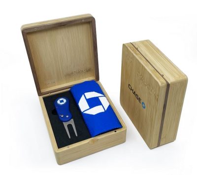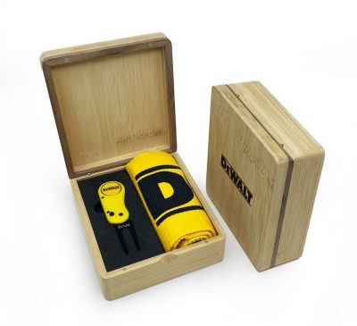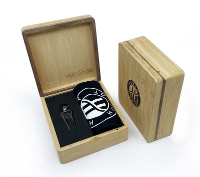 Pour augmenter la qualité de votre cadeau golf, la présentation des principaux accessoires de golf vous est proposée dans un petit coffret en bambou, personnalisable.